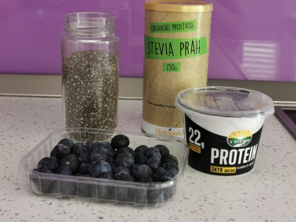 Nakon toga pola borovnica u jogurt, a pola na vrh kao ukras.