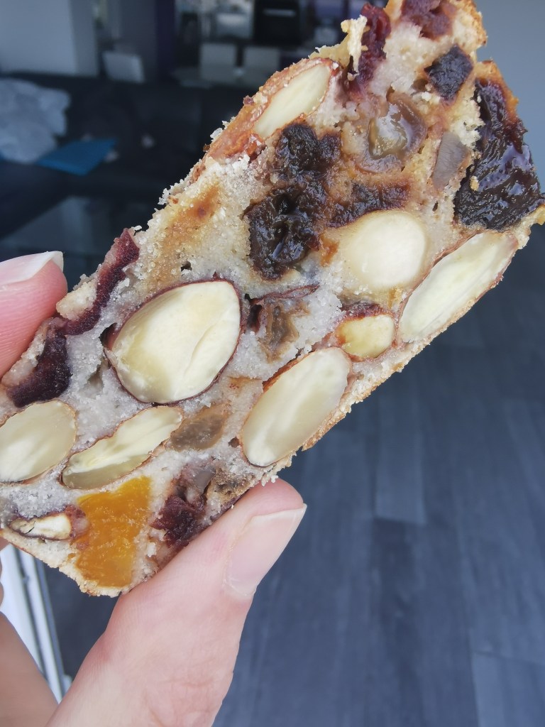 Jedan recept koji je veoma jednostavn i brz za napraviti. Može stajati duže vrijeme u zatvorenoj posudi i idealan je za blagdane. Izgledom podsjeća na energetske pločice, zaista i služi u tu svrhu. Naime velika koncetracija suhog voća i orašastih plodova vrlo brzo podiže energiju. Izgled mu je također fantastičan i primamljv.
