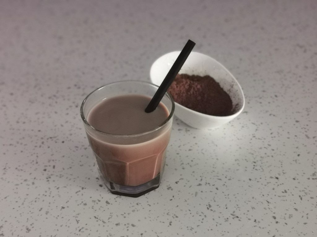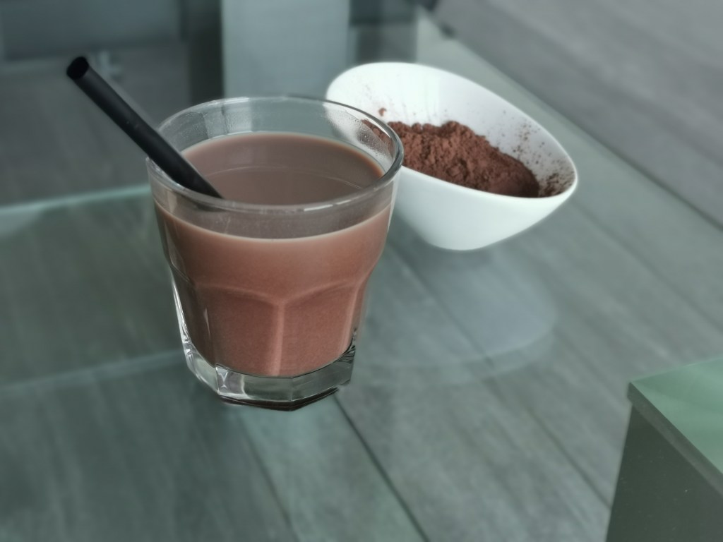Za napitak od kakaa ugrijem vodu tako da ude vruća, ali ne ključajuća. U cca 50 do 100 ml stavim punu malu žlicu kakaa i dobro promiješam dok se kakao ne otopi. Zasladim stevijom i pola male žlice domaćeg meda, pa nadolijem željeno mlijeko (bademovo, sojino, kravlje…).