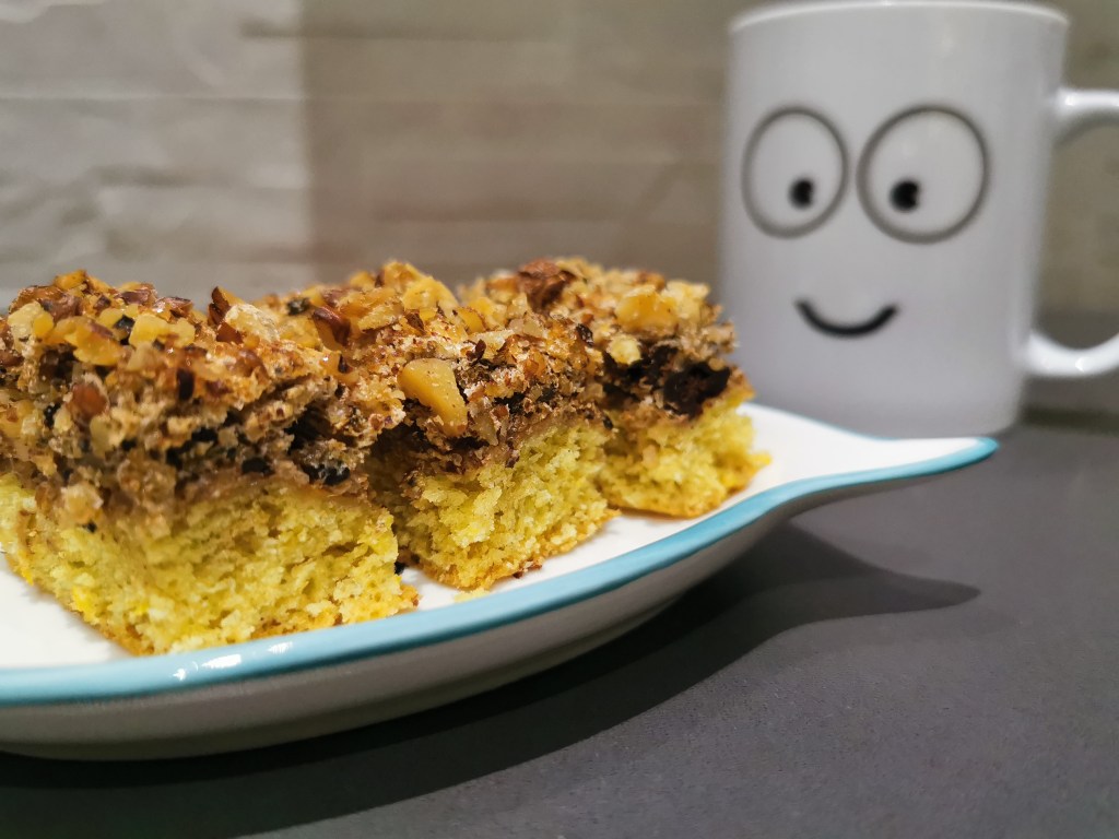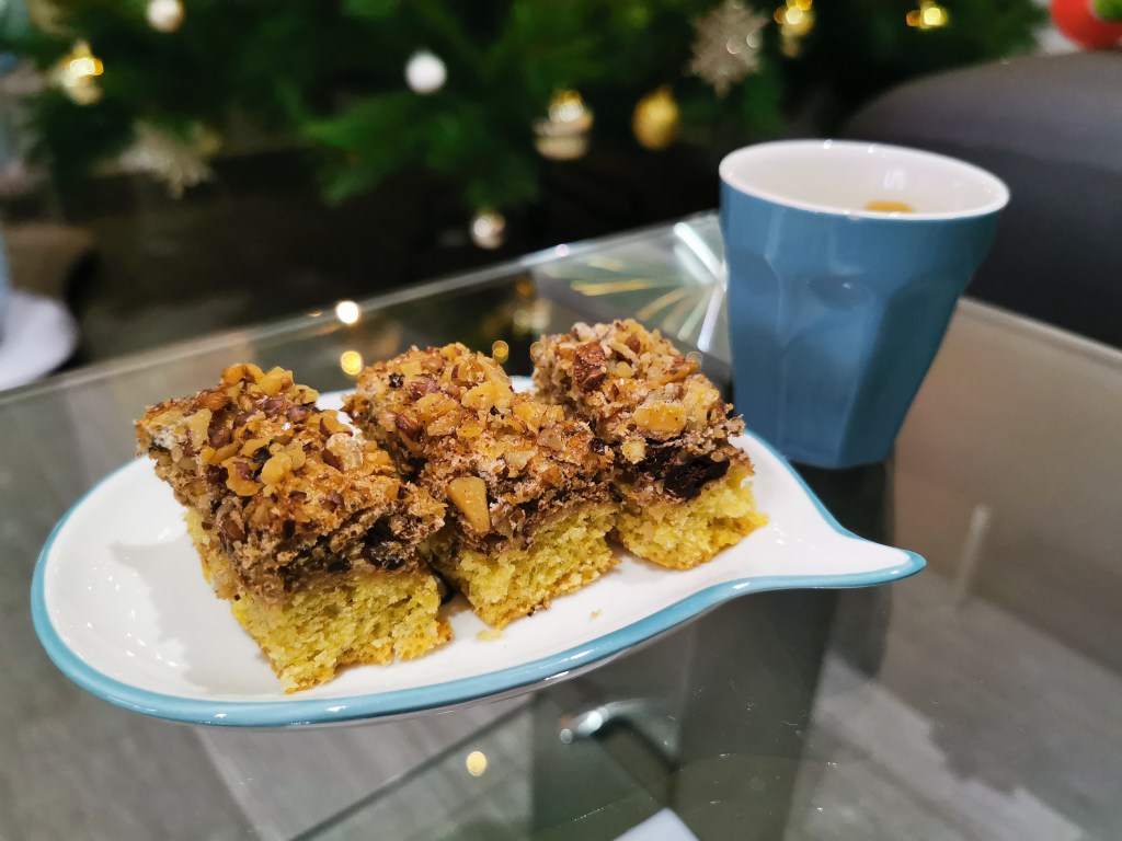 Peći oko 20 min do pola sata na 180 °C. Kolač pustiti da se ohladi (najteži dio 😁) te narezati na male komade.