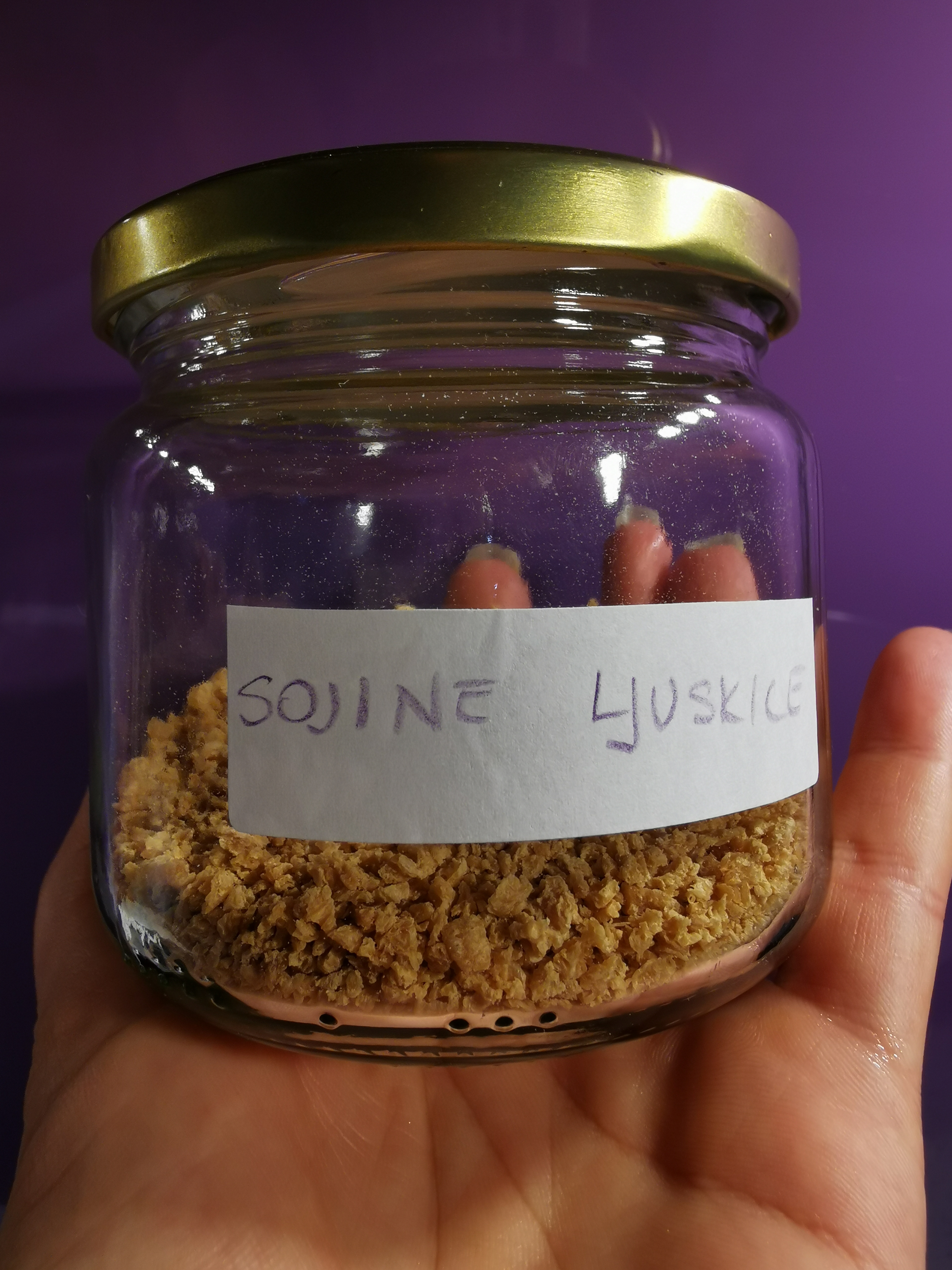 Sojine ljuskice potopiti u mlijeku i pustiti da nabubre.