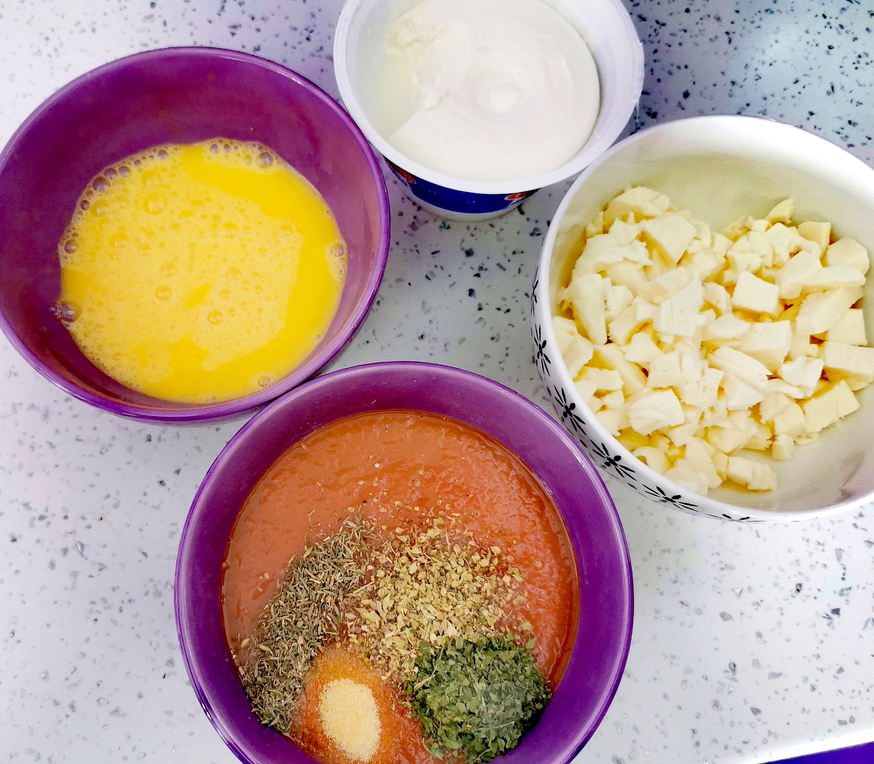 Za to vrijeme pripremiti nadjev. Pelatu pomiješati sa suhim začinima, rajčice narezati na tanke ploške, izmutiti jaja i ricota sir.