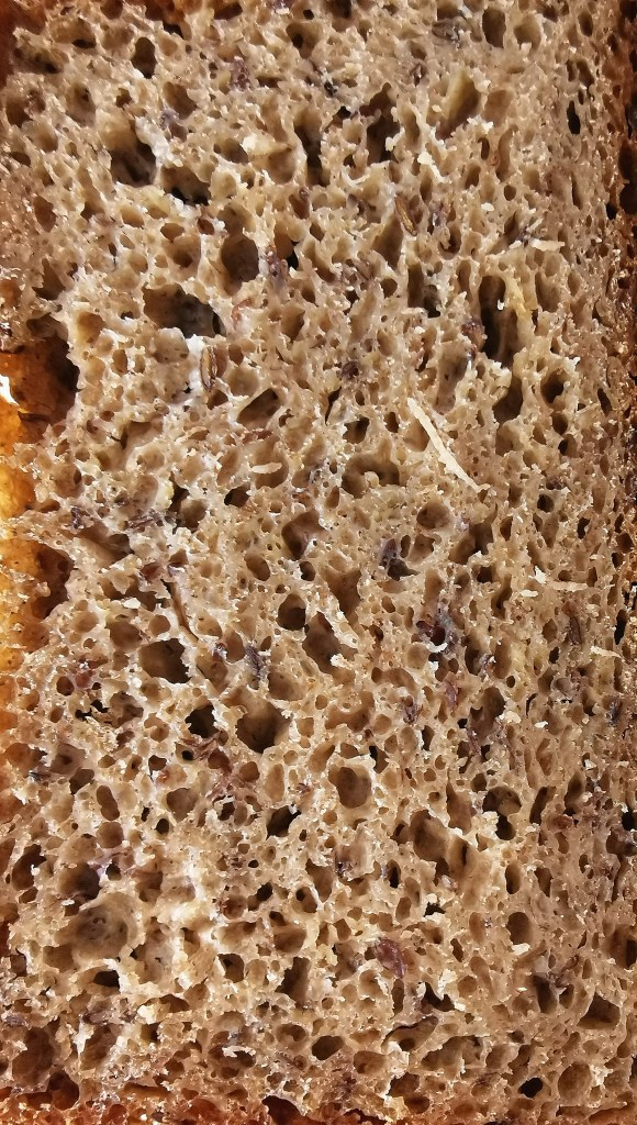 Sve sastojke umijesiti u tijesto. Tijesto će biti ljepljivo na dodir. Pustiti da se diže na toplom mjestu oko sat vremena. Ponovno premijesiti tijesto i ostaviti da se diže u kalupu, prethodno obloženom papirom za pečenje, oko pola sata. Peći u zagrijanoj pećnici na 170 stupnjeva oko 40 minuta ili dok kruh ne poprimi lijepu smeđu koricu.