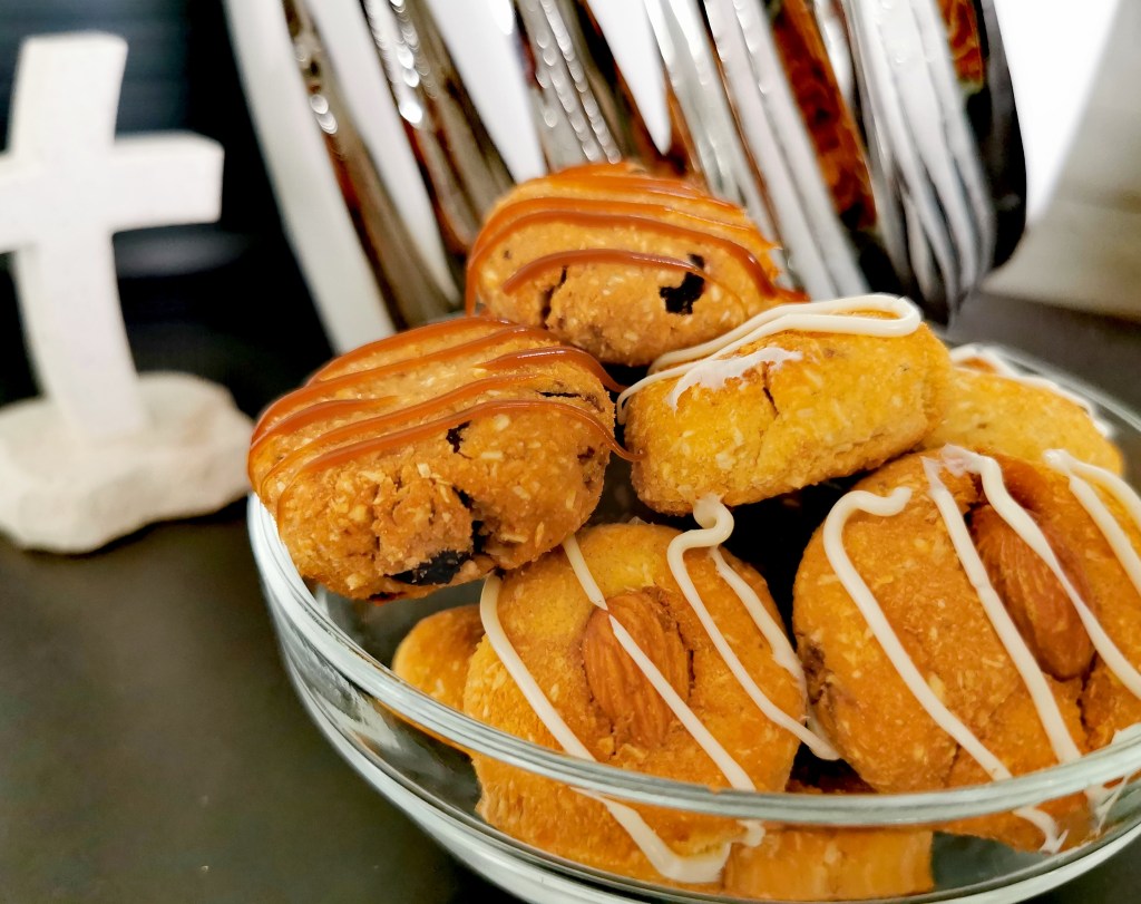 Napravila sam dvije varijante ovih kolačića. S višnjama i bez, pa kako tko voli… Recept je isti za obe varijante, samo se u drugom dijelu smjese mogu dodati otkoštene višnje (zamrznute, konzervirane, suhe-namočene… Koje god)